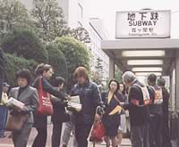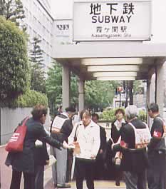 4月のビラまきは、雨はまぬがれたものの強風に見舞われ、皆、立っているのが精一杯という状態だった。特に、山村さんは、あっちこっちへヨロヨロしていて、それを観察して一人で楽しんでいる私だった。その時、全身、カーキ色の雨ガッパに身を包み,帽子を頭までかぶった二十代位の男性が、私の目の前を通り過ぎた。思わずギョッとした私は、ビラをまいていた手が止まり見入ってしまった。そうすると山村さんの方へ近寄り、ビラを受け取ってなにやら話を聞いている様子。しばらくすると納得したかのようにペンを握り署名をしたのだった。「僕も大きな権力は嫌いですから」と言って署名をしたそうだ。 この日は、山村さんに軍配があがり、富山さんと私は「ビラまきだけが上達してしまう」という惨憺たる成績であった。(うり美) 大井町のYさんから というお便りとともに二千円いただきました。ありがとうございます。きっと前進をかちとりましょう。 |