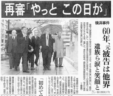 ■横浜事件の再審開始決定出る4月15日、横浜地裁は「横浜事件」の再審決定を行いました。ついに請求人、弁護団そして「横浜事件の再審を実現しよう!全国ネットワーク」(代表・木下信男さん)をはじめとする支援の方々の執念の努力が実ったのです。