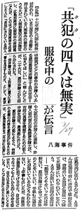 えん罪を根絶するために阿藤周平 みなさん、こんばんは。ちょうど一年前の六月に、同じように東京高等裁判所に申入れに行きましたが、なんとも物足りない気持ちなんです。というのは、なぜ再審を担当している刑事第三部の担当の書記官が会わないのか。全然関係のない総務の職員が会うのですから。僕が抗議しても暖簾に腕押しのようなもんでね。だけどもやらなくてはなりません。裁判所に行って、正しい裁判をしてくれと、これから先も行動を続けて行きたいと思います。 そこで、原田弁護士は、大阪の佐々木哲蔵先生と東京の弁護士さんとで広島刑務所にその事実を確かめに行ったわけですよ。ところが、それは事実だけれども、その手紙は発信しないんだとあくまでも刑務所は言うわけです。口頭弁論が七月の年の三月頃にこの問題が明るみに出て、その時にちょうど、大阪選出の参議院の議員だった亀田さんという八海事件の弁護人だった人が、参議院の法務委員会で、それをぶちまけて、法務省のトップを引っ張りだして確かめたわけです。その時に、その矯正局長は、あると、刑務所が保管しているということを認めたわけです。一九通というのも認めたわけです。ところが、それを出せと言っても出さないわけです。どうしても出さない。このように新聞に毎日のように書き立てられているんですよ。もっとあります。これは富山さんが全部調べてコピーしてくれたんですがね、当時の新聞は報道しているわけです。それで弁護人は、最高裁に対して、第二小法廷ですが、こういう書類の提出命令を出してくれと要求したわけです。あの時の第二小法廷の裁判長は奥野さんです。検察庁に対して実際にあるのなら全部提出するようにという命令をしたわけです。それで、やっと法務省は隠し持っていた一九通の上申書、自分一人でやったんだ、他の人はこの事件には全然関係ないんだ、お詫びするという真相を語った上申書です、これをやっと出したわけです。それが口頭弁論に間に合って、その口頭弁論の時に、裁判所はそれを証拠として採用したわけです。 ところが、その期間にYは、こんなものを書いたからというんで懲罰を受けているわけです。真実の上申書を書いたということで、刑務所はYを懲罰房に入れているわけです。そして、その前に、Yが阿藤達と一緒にやりましたという上申書も書いているんですが、その時は刑務所は懲罰にも何にもしないんです。単独犯行だという真実の上申書を書いたら、こんなことを書いたというんで、規則違反だと言って刑務所は懲罰房に入れたわけです。そして、病気だと言って全然弁護士さんに会わせてくれないわけです。 一審の山口地方裁判所の岩国支部の藤崎という裁判官がいるんですが、僕に最初に死刑判決を言い渡した裁判長ですが、それがちょうど、その当時、退官して小倉で公証人になっていたんですが、まだなおかつ自分の判決は正しいんだと言って、こともあろうに参議院に立候補して、その時に、政見放送で八海事件は自分の判決が正しいんだと言ったわけです。自分の判決は正しいんだというのが立候補した理由なんです。この執念というのは恐ろしいと思います。身の毛がよだつような、そういう裁判官もいるわけです。 それと、下飯坂という最高裁の裁判長、私を無罪から有罪にしろと差し戻した裁判長がいますが、この人は松川事件でも有罪だという少数意見を述べた人です。それが、新聞に載っていたと思いますが、自分が死んだら、棺桶に八海事件の判決文と松川事件の判決文を入れてくれと言った。ものすごい執念ですよ。これは本当の話なんですよ。恐ろしい話ですよ。 だから、富山さんの再審に対しても、私は、検察官は絶対に隠している証拠を出さないと思う。八海事件の上申書でも、明るみに出て、これだけ新聞で検察のやり方、刑務所のやり方が叩かれているわけです。参議院の法務委員会で追及しても、持っているのを認めても、出さない。あくまでも出さなかった。だから、弁護人は業を煮やして、最高裁に掛け合って、最高裁は法務省に対して出せと命令したわけです。最高裁もあれだけ明るみに出たらやらざるを得ないでしょう。 なるほど、私達は真犯人の告白で無実が明白になりましたけれども、ただそれだけで僕たちは無罪になったんじゃないんですよ。記録の中から、私達が無実である、冤罪だということがはっきり出ているんですよ。 『真昼の暗黒』という映画が上映されたのをご存じだと思います。脚本家が、橋本忍さんといって『蟹工船』とかいろいろ書いていらっしゃる方です。監督が今井正さん。二ヵ月位かけて橋本忍さんが『真昼の暗黒』の脚本を書くわけです。これは本を読んでいるより裁判記録を読んでいる方がおもしろい、公判の記録を読むと、はっきりと阿藤君達の無罪が浮き彫りになってきたとおっしゃっていました。だから、あの『真昼の暗黒』の映画は無実だという事実に