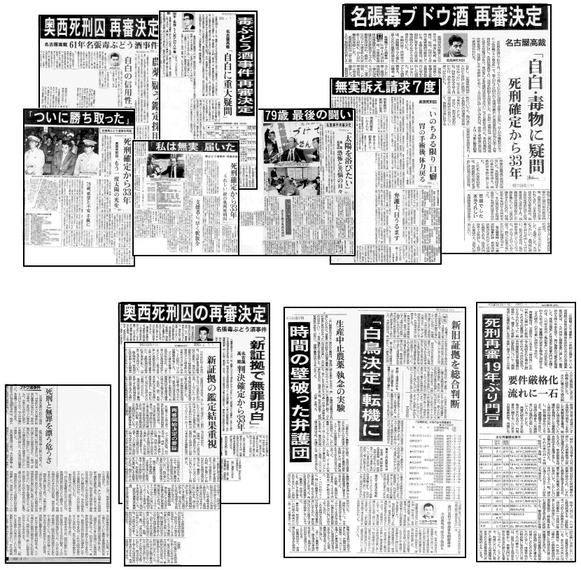 | 富山さんが「200号」「200号」と騒いでいる。弁護団の実務が忙しくなり、富山さんにニュースの編集を引き継いで久しい。100号は1997年の1月号だった。富山さんが1995年の12月に満期で出獄して、ちょうど1年が経った頃だった。あの時は佐藤さんも、木原さんも、木下先生もご健在だった。100号の時は編集長として特集を組んだが、あれからもう、さらに100号かという感慨が、この間に亡くなられた方々の事ともども脳裏をよぎる。 今年4月5日、名古屋高等裁判所は、名張毒ぶどう酒事件の第7次再審請求について、再審を開始する決定を行った。第5次再審請求の棄却、異議申立棄却、そして最高裁での特別抗告棄却、さらには、第6次再審請求も退けられた、絶望的とも思えるような状況を乗り越えての開始決定である。奥西勝さんの不屈の闘い、弁護団の不断の努力の積み重ね、そしてそれを支援し続けた方々の闘いに敬意を表したい。やはり、闘い続けたものの勝利、諦めなかったことの勝利である。 許しがたいことに検察官は異議申立を行った。しかし、「真実は必ず勝利する」ことを確信させる今回の再審開始決定だった。再審の逆流とも言われる昨今の状況に、大きな風穴を開けるものとなるに違いない。 富山再審も、異議審において新たな地平を切り開く決意である。断じて負けるわけにはいかない。これまで歩み続けてきた道、これまで積み上げてきたものの力を信じ、再審開始・再審無罪に向け、大きく飛躍したい。真実ほど強いものはないのである。 (山村) |