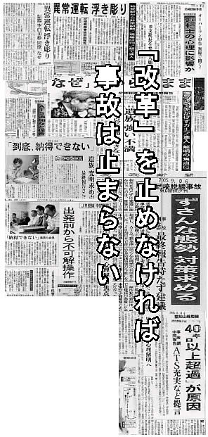 9月6日、国土交通省は尼崎事故の中間報告を発表した。運転士を含む107人は、国鉄分割・民営化を強行した中曽根康弘とJR西日本当局によって殺されたのだ。乗客の安全は、労働者の権利を守る労働組合=労働運動の健在によってのみ維持される。「一人は万人のために、万人は一人のために」は再審のたたかいと通底する。生命と権利が正当に守られる社会を築くためにがんばろう |