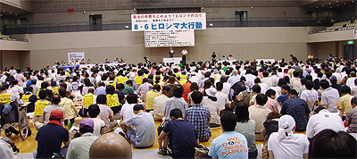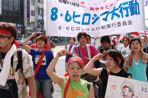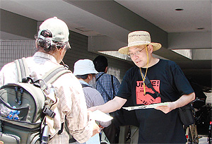 今年も「8・6ヒロシマ大行動」に参加しました。 一生懸命ビラまき。それにしても暑い。