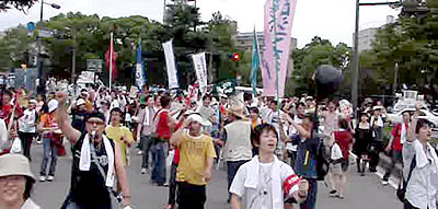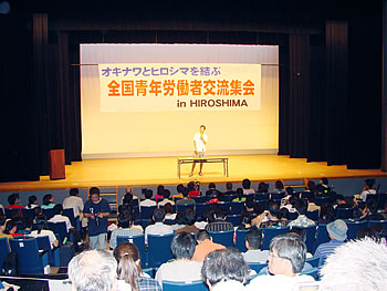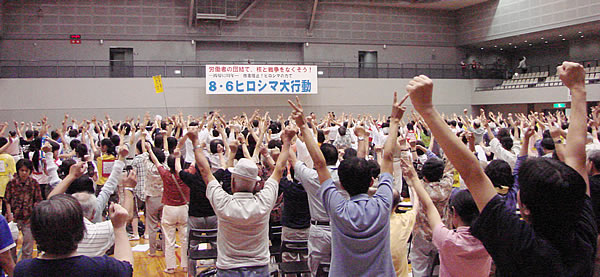 私は、今年も恒例の8・6ヒロシマに行ってきました。日程的には前倒しで4日(土)から参加です。4日から広島に行って6日までどうするんや、と言われそうですが、今年は盛り沢山で、4日「青年集会」、5日「国際連帯集会」、6日は全一日行動という具合に、暑さをうわまわる熱気に満ちた密度の濃い3日間でした。