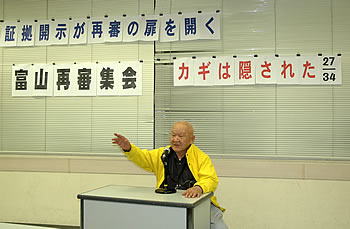 本当に時間がかかっているということと同時に、あちこち因縁があるなという目で見ていたんですけれども。例えば異議審で三人目の裁判長ですか、二〇〇七年の五月に門野博裁判長という今の裁判長に変わっています。この門野博裁判官というのは、名張の毒ぶどう酒事件の再審開始決定が一旦出たのですが、それを検察側が異議申立したことで、異議審で再審開始決定が取り消されたんですが、その決定を出したのが門野博裁判官。それが二〇〇六年の一二月の年末、二六日くらいです。この門野裁判官というのは、刑事裁判の中では評判のいい人で、比較的期待できるとされていた。再審開始決定のように、異議審も検察側の異議申立を棄却して開始するのではないかという弁護団の期待の中で、門野博裁判官は開始決定を取り消すという決定をします。その人が名張事件の開始決定取り消しの後、転勤で東京高裁に来て、この富山事件を担当することになったということです。